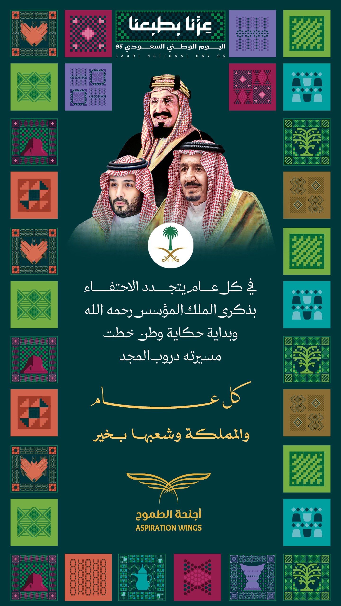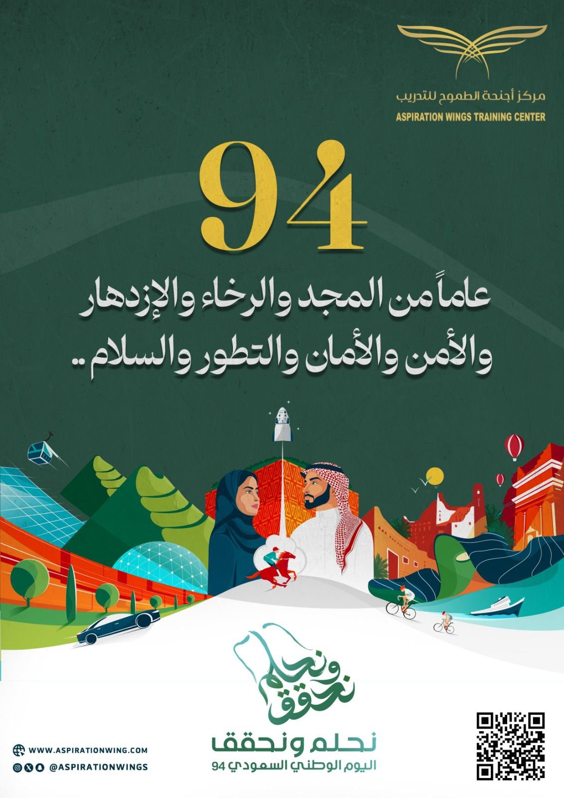 بكل فخر واعتزاز، يشارك مركز أجنحة الطموح للتدريب الوطن الغالي الاحتفاء باليوم الوطني السعودي الرابع والتسعين، تحت شعار: “نحلم ونحقق”، مستذكرين مسيرة 94 عاماً من المجد والعطاء والرخا