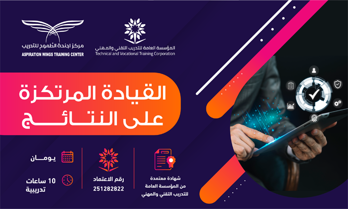 | 1. أن يتعرف المتدرب على القيادة والإدارة. 2. أن يفهم المتدرب القيادة المرتكزة على النتائج: السمات والنتائج. 3. أن يعي المتدرب الهرم التنظيمي للنتائج النهائية. 4. أن يتمكن المتدرب من إدارة الأولويات والتركيز على النتائج. |